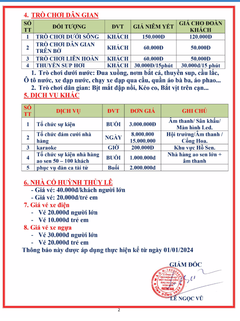 Ngoài việc tham quan chụp ảnh cùng những tiểu cảnh, quý du khách còn có thế tham gia các dịch vụ, trò chơi theo bảng giá tại KDL: